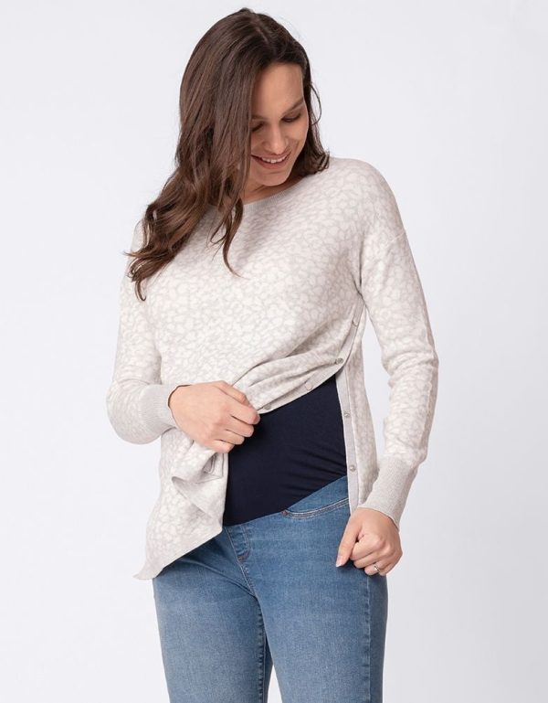 Match with your little one in our adorable Mama & Mini Animal Print Sweaters! Beautifully knit in pure cotton, these stylish pieces are super-soft & kind on sensitive skin. The nursing sweater for mama features easy-open poppers at the sides for breastfeeding, while the mini version fits from 3 – 6 months & has poppers at the shoulder for easy changing. A subtle animal print design completes the look, keeping you & your little wild child ultra-comfy & bang on trend. Team with leggings or denim for an easy everyday look.